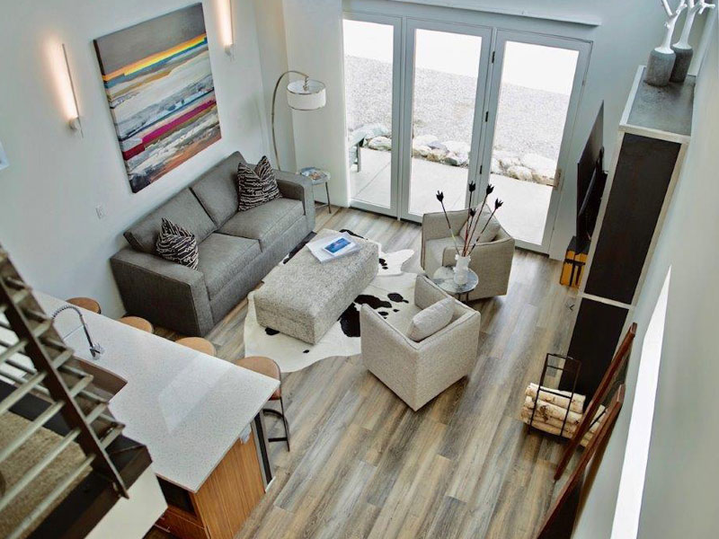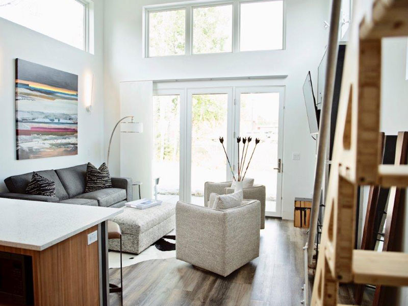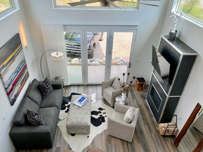 The Good Medicine (West Cabin) or 'Cabin B' features a beautiful 1 bedroom, 1 bathroom, kitchen, living room layout with a loft. The living room and kitchen have a nice open air