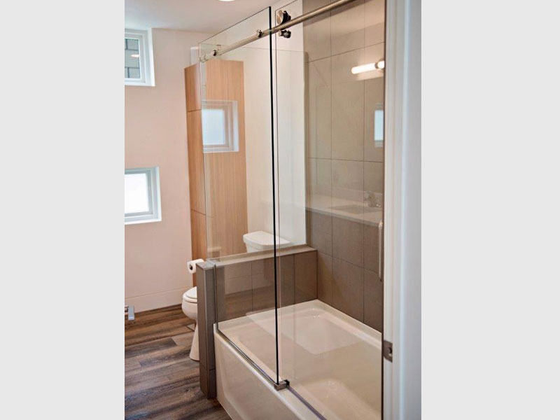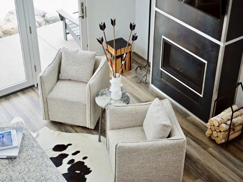 This cabin features an indoor gas fireplace, full kitchen, climate control and bathroom with a full tub and shower.