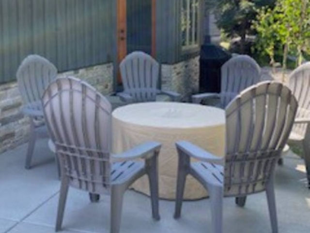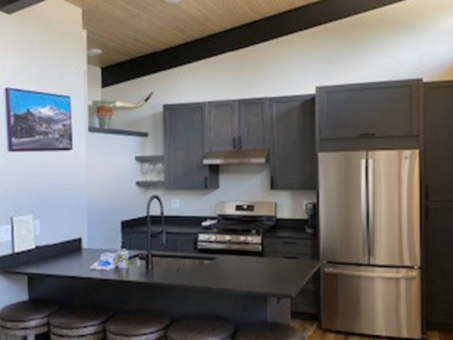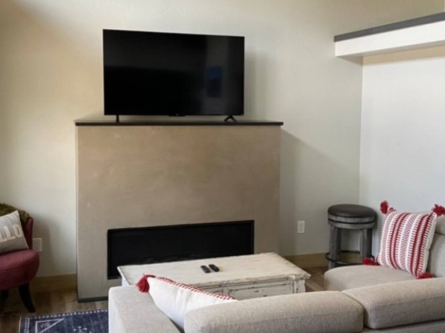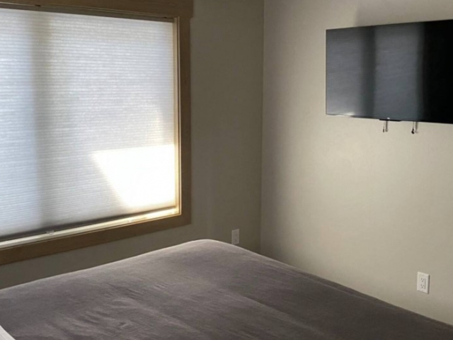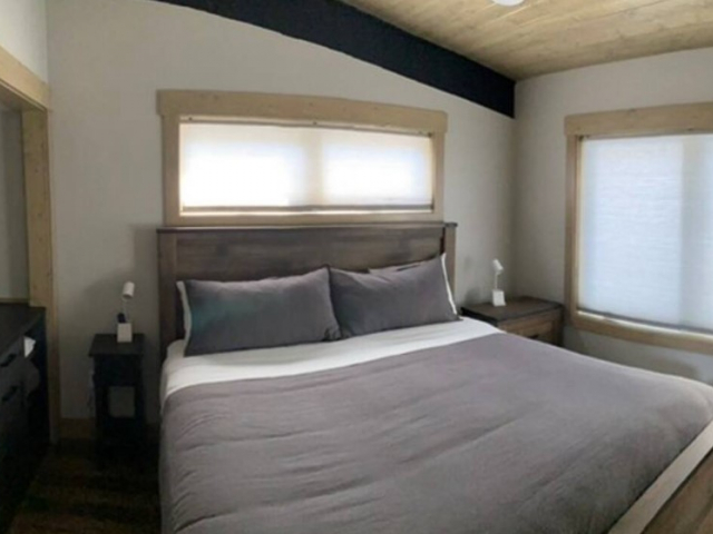 Outside, the patio has plenty of seating for enjoying the views. There is also a BBQ grill and fire pit for roasting marshmallows or cooking up a delicious meal. Pets are allowed with an additional fee.